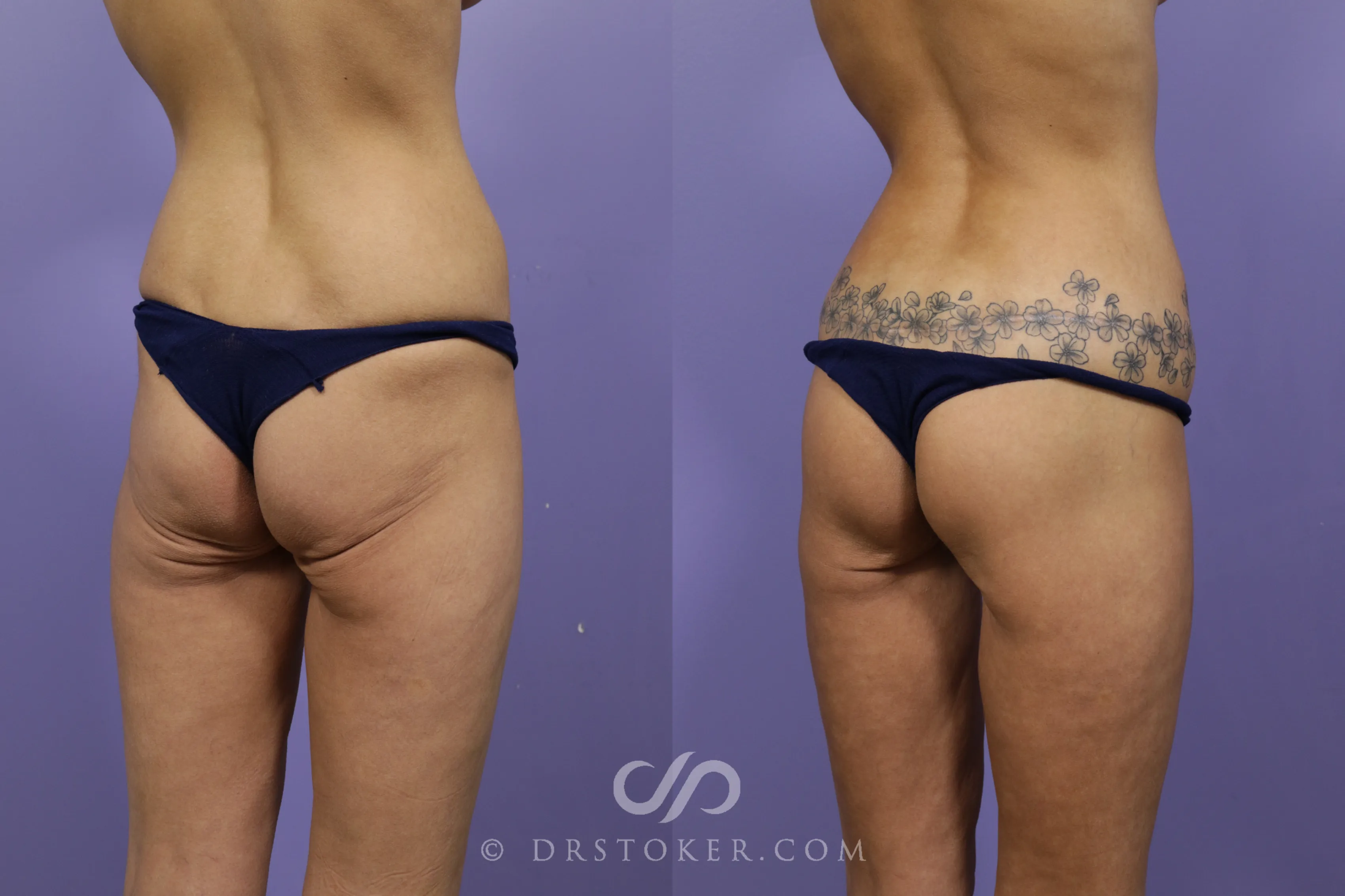 The patient’s post-operative appearance is a testament to Dr. Stoker’s technical precision and artistic approach. The scars are nearly invisible, allowing the patient to confidently showcase her body. Enhancing the outcome further, the patient chose to incorporate a tattoo along the surgical line, blending it seamlessly with her aesthetic goals.