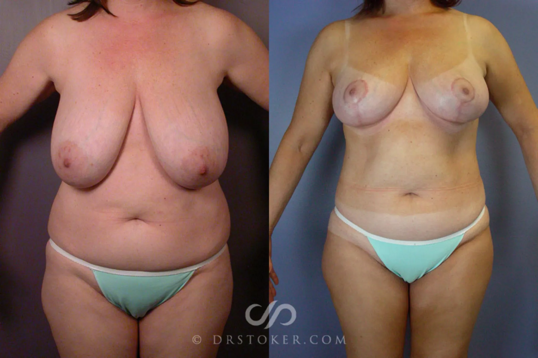 This 55-year-old Florida woman heard about Dr. Stoker's Practice and decided to make the trip to California for a consultation because she was generally unhappy with her body after having children. Her breasts were very large and sagged, and she was carrying excess fat on her abdomen and flanks. Knowing that a mommy makeover could help improve her figure and reduce her breasts to a more manageable size, she was eager to discuss her options for breast reduction surgery and liposuction.