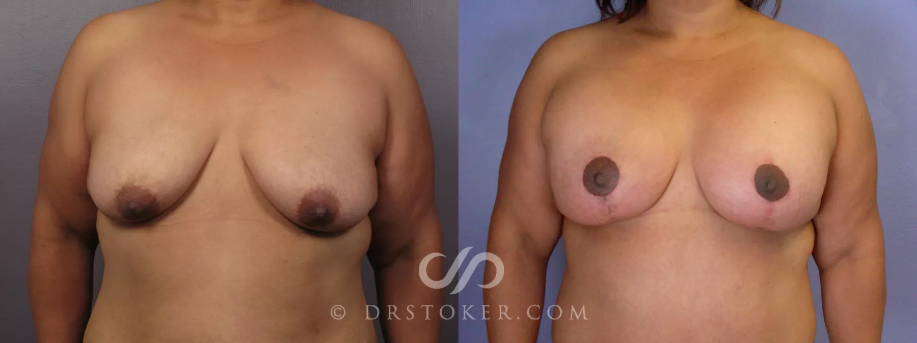 This 48-year-old mother desired perky and full breasts. Dr. Stoker performed a breast lift and augmentation using 322cc silicone gel implants. She is shown before and three months following her surgery.