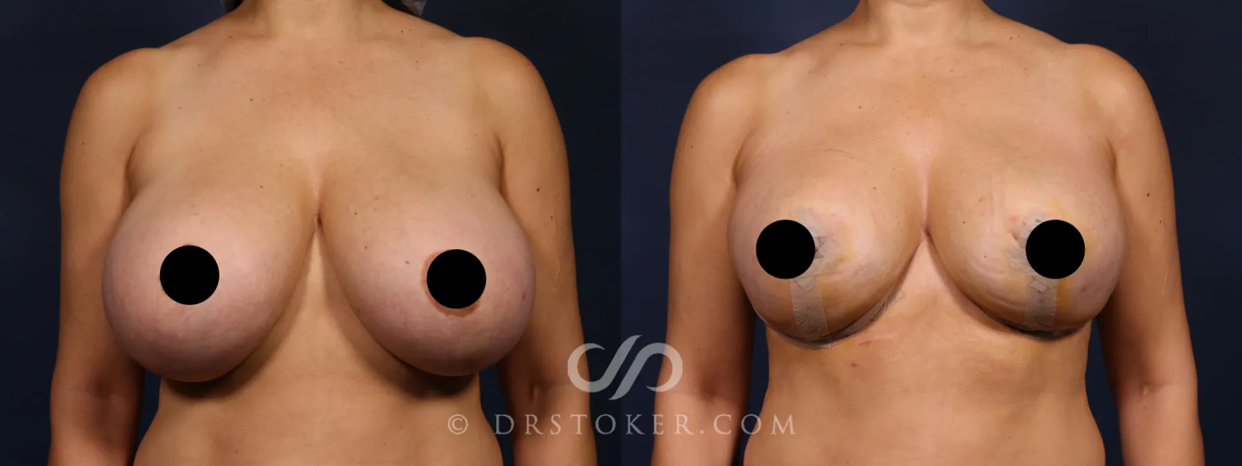 This patient chose breast reduction to address discomfort and improve her quality of life. She previously underwent breast reduction with Dr. David Stoker almost two decades ago and returned for a secondary procedure when symptoms recurred. Large breast size can often contribute to back, neck, and shoulder pain, as well as challenges with clothing and physical activity. The goal of this breast reduction (for women) in Los Angeles was to alleviate physical discomfort and help the patient feel more comfortable in her daily activities and wardrobe selections.