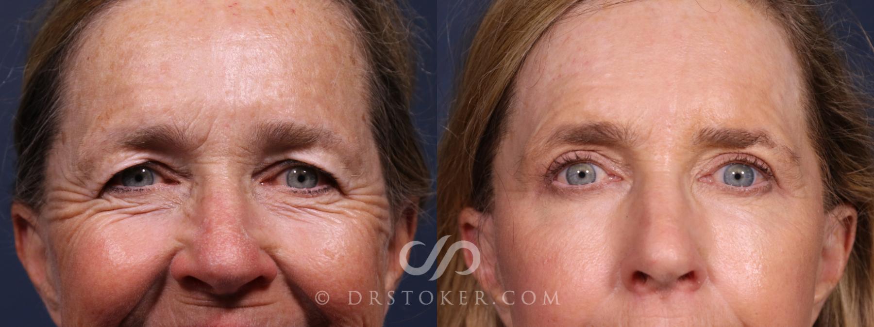This patient, a 63-year-old mother and teacher, chose to undergo Laser Skin Resurfacing Eyes in Los Angeles and eyelid surgery as part of a comprehensive approach to facial rejuvenation. She sought these procedures to help address the tired, aged appearance around her eyes and to restore a more refreshed and vibrant look. Before surgery, the patient experienced concerns about lax, wrinkled skin and a “sad-eyed” appearance that did not reflect her energy or her outlook.