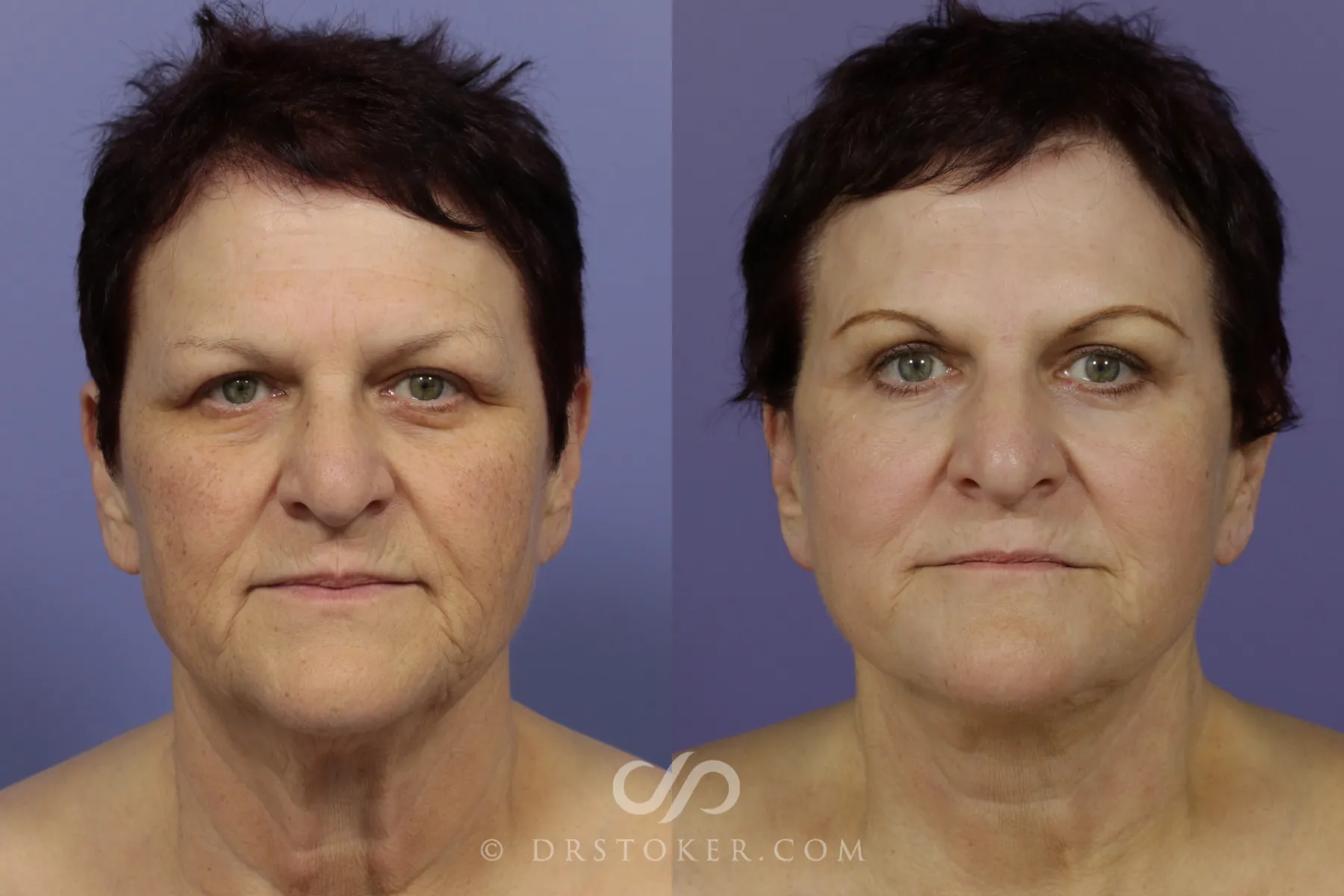 Her decision to pursue a Facelift - Traceless Facelift in Los Angeles was motivated by a desire for natural results without obvious signs of surgery. Dr. David Stoker performed his signature traceless face and neck lift, complemented by upper eyelid surgery and platysmaplasty. The procedure aimed to restore youthful contours, tighten the neck, and minimize visible incisions. To further enhance skin quality, the patient also underwent two deep fractional CO2 laser skin resurfacing sessions. These treatments targeted fine lines, sunspots, and skin texture.