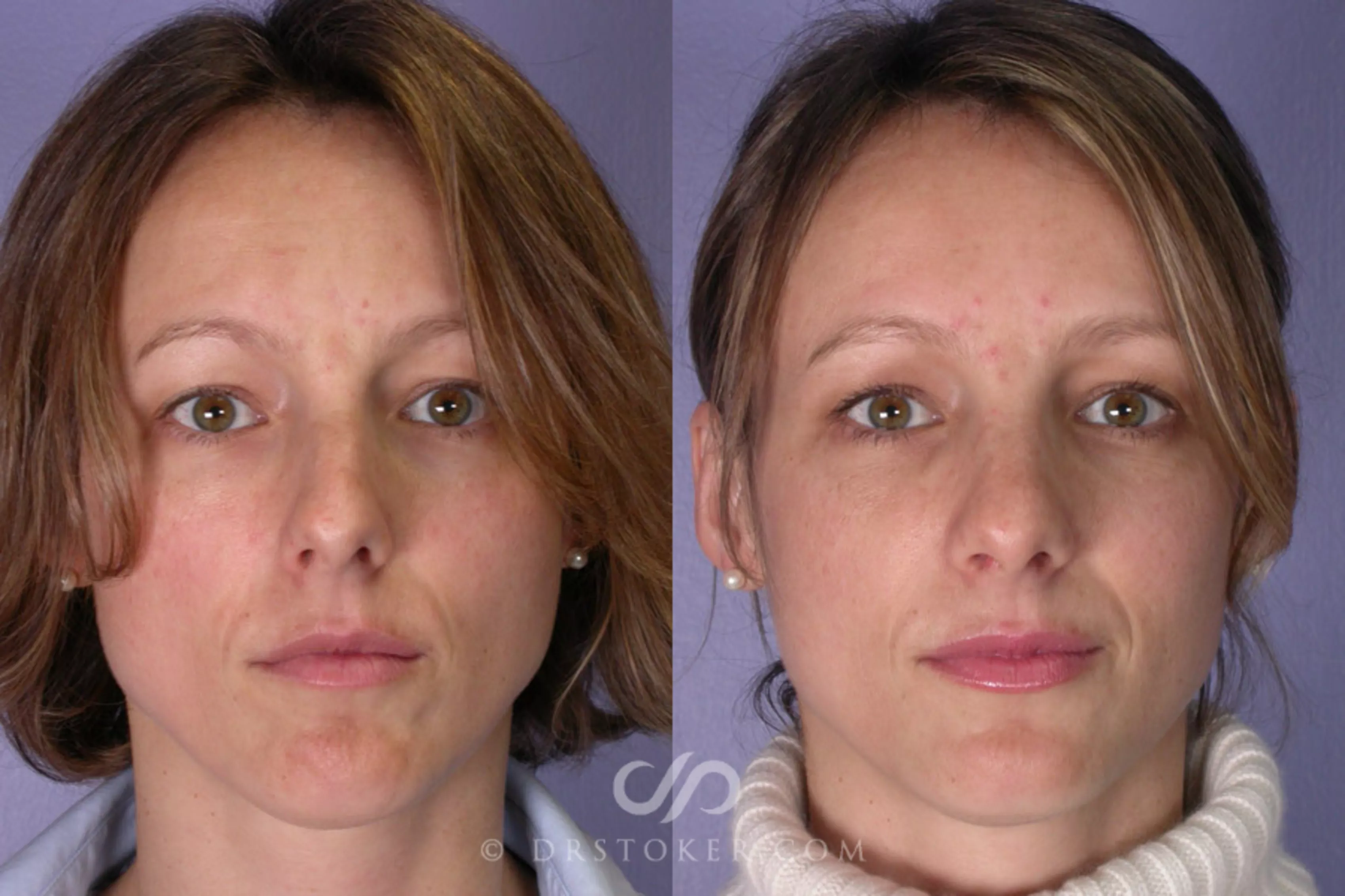 This woman wanted to reduce the prominence of her nose through surgery. As can be seen in her "before" photos, she had what plastic surgeons consider a tension nose, where the nose cartilage projects out so much that it stretches the nostrils and makes them appear like thin slits. Tired of the shape of her nose, she decided to find a rhinoplasty specialist, finally scheduling a consultation with one of the talented surgeons at Dr. Stoker's practice.