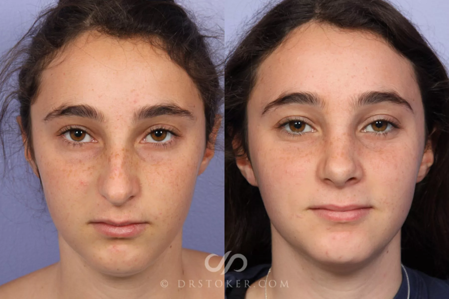 This 16-year-old girl wanted to reduce the size and prominence of her nose. With the support of her parents, she began searching for a plastic surgeon in Los Angeles and came across Dr. Stoker's practice. Impressed with the before and after photos on their Web site, she requested a consultation.