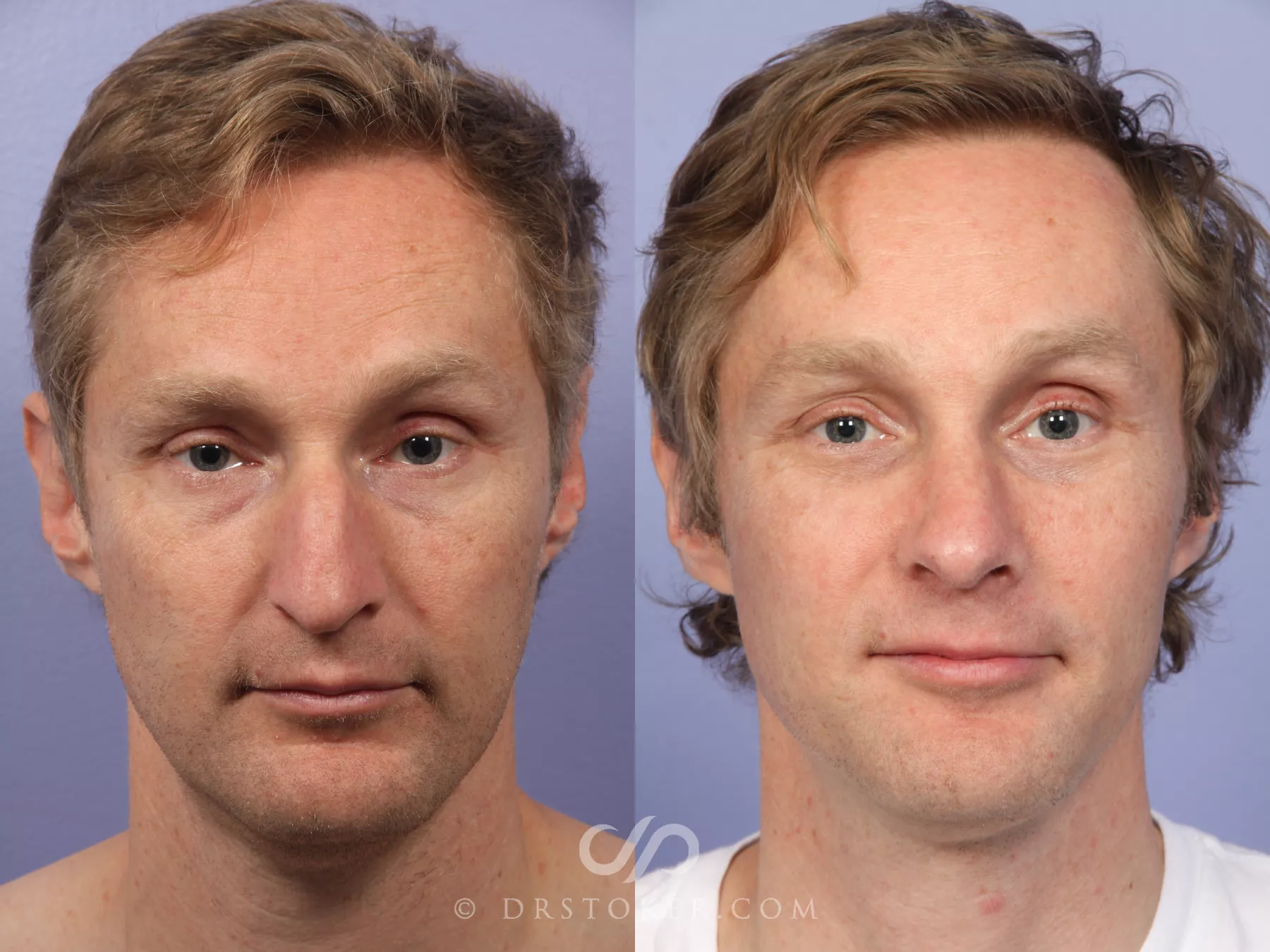 This 40-year-old male desired to straighten his nose, decrease its size and improve its proportions. Dr. Stoker performed a rhinoplasty and septoplasty to accomplish his goals. The patient is shown before and two months following his surgery.